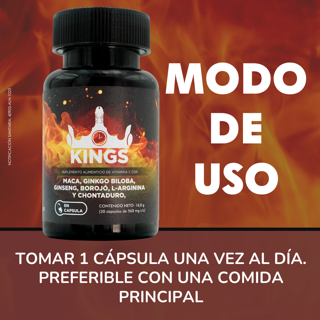 Suplemento alimenticio de Vitamina C con Maca, Ginko biloba, ginseng, borojó, L-arginina y chontaduro, en cápsula. Gracias a sus ingredientes aportan antioxidantes, ayudan a incrementar la energía, aumenta la potencia sexual, fortalece el sistema inmunológico, reduciendo la fatiga y la debilidad.